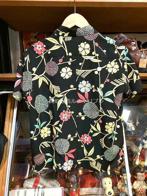 着物生地で作られた絹100%のアロハシャツです。 袋とじ襟にココナッツボタン仕様の本格的な作りですが、通常使わないようなデザインの生地を使うのも魅力の一つです。 現在は残念ながら閉店されています。