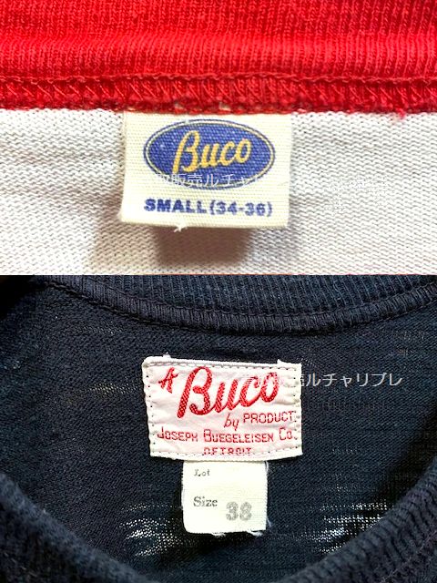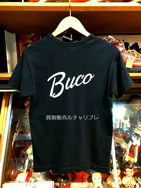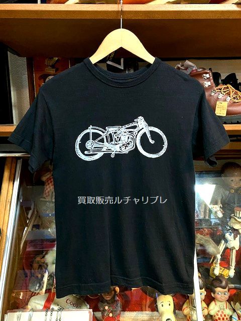 「FLYING WHEEL/フライングホイール」の白地ベースのリンガーTシャツと、黒地ベースの胸にバイク、背面には大きなBUCOの文字がデザインされた「BUCO JERSEY TEE」の吊り編みTシャツです。