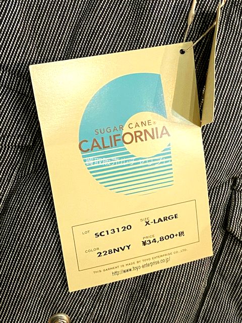 東洋エンタープライズのアメカジブランド「SUGAR CANE /シュガーケーン」。 ウォバッシュストライプ風のボディーに肩ヨークはスエード革が使われています。 ボタンにはインディアンコンチョボタンを使用したウエスタンシャツをモチーフにしたダウンジャケットです。
