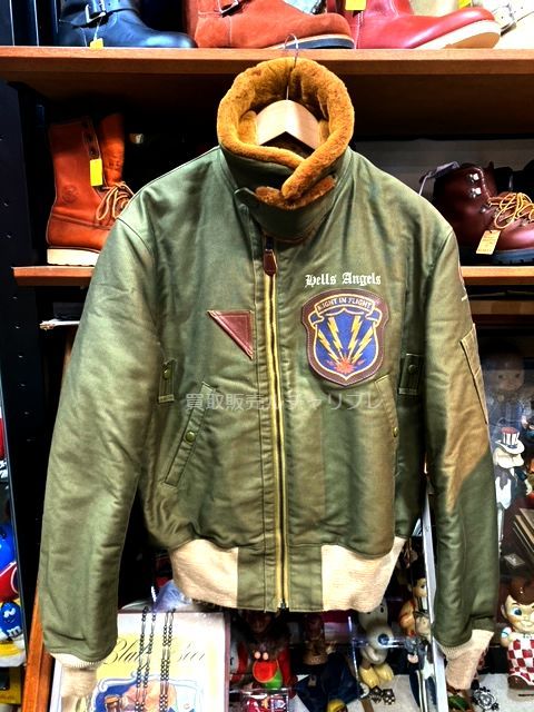 TOYS McCOYの2010年秋冬モデル。 第二次大戦下のヨーロッパ上空を飛んだ民間用のROUGH WEAR CLOTHING Co./ラフウェア社製B-15Aをベースに、第8航空軍隷下の第303爆撃航空群に所属する兵士のジャケットをイメージしたカスタムモデル。 ゴートスキンにハンドタッチで描かれたグループパッチ、直接プリントされた肩の第八航空軍章を配し、トイズマッコイ代表の岡本博氏描き下ろしのバックペイントが入った豪華なフライトジャケットです。 発売当時の価格は88200円。 襟周りのボア、袖口や裾のリブの状態も良い美品です。