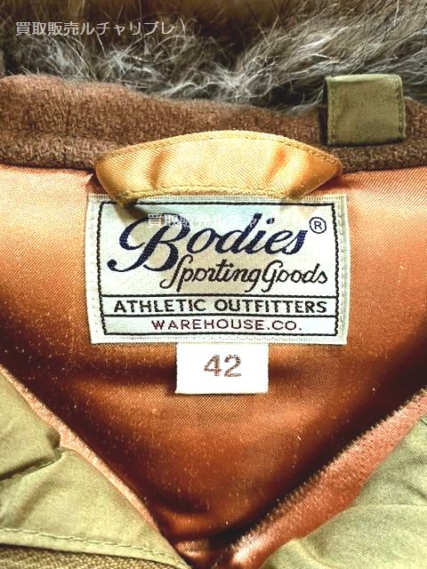 黒いW.Hタグよりも以前に発売された、Bodiesタグの「ウエアハウス アラスカダウンジャケット」、通称“メロンパン”です。 B-9のベースになったと言われるミリタリーダウンパーカーは、1940年代のダウンジャケットをもとに作成され、極寒地での着用に耐えうる保温性と軽量性を兼ね備えています。